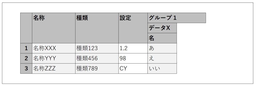 {header: 'データX', align: 'left', columns: [